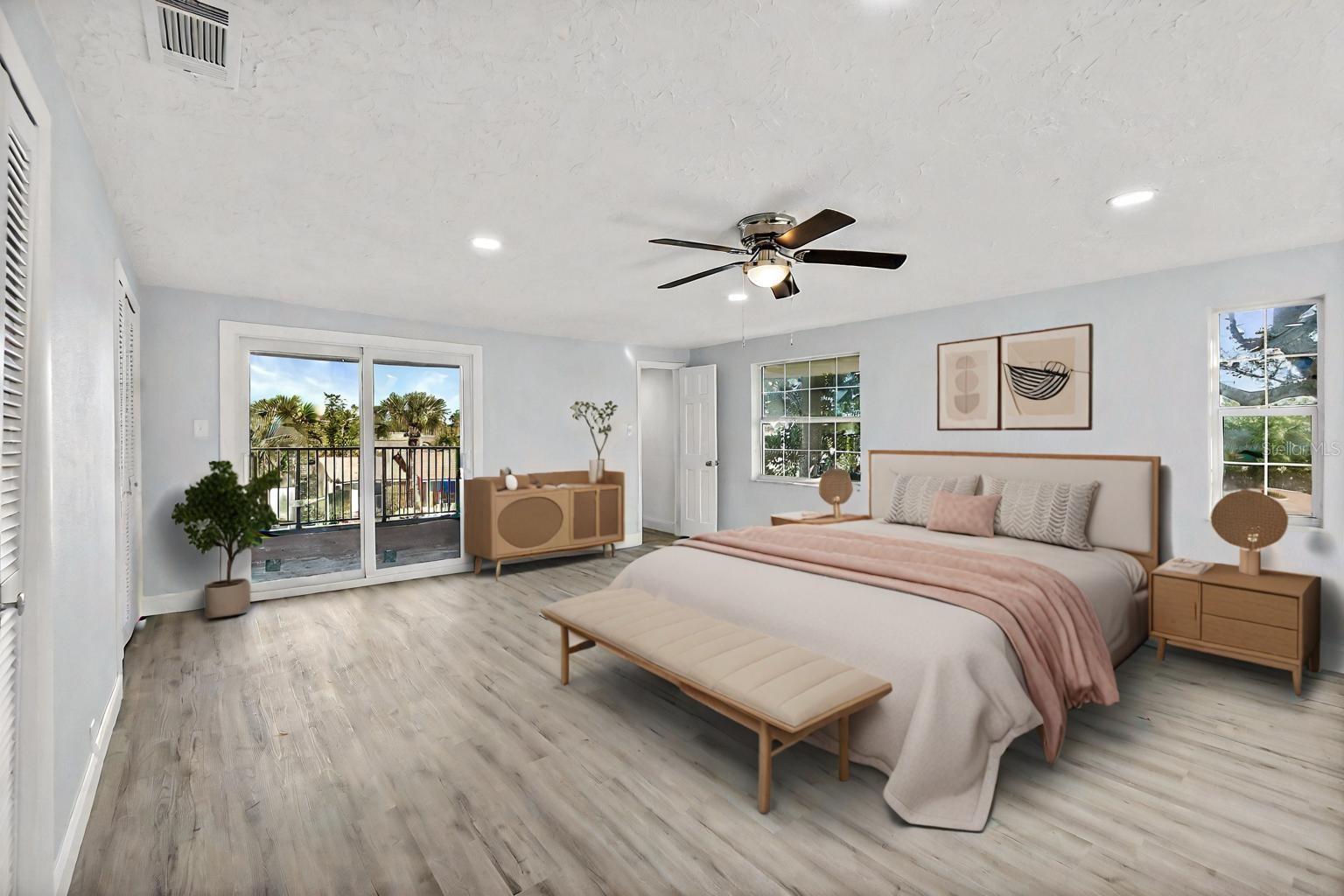 One or more photo(s) has been virtually staged. PHENOMENAL DEAL!! EXCELLENT PRICING FOR RENOVATED HOME! This beautifully renovated home features a range of HIGH-END finishes and thoughtful design elements throughout with the Atlantic OCEAN STEPS AWAY! Walk through your private front porch into the OPEN floor plan. Formal Living and Dining Room combo with lots of NATURAL LIGHT, large beautiful windows and luxury vinyl plank flooring. All flows into the renovated Kitchen with QUARTZ countertops, quartz backsplash, large island overlooking Dining Room, Samsung stainless steel appliances, & built in pantry. Large kitchen window overlooks your backyard and features a door that leads out to the lanai, making it perfect for entertaining. The family room is a cozy retreat, with LVP flooring and a WOOD-BURNING fireplace that creates a warm and inviting atmosphere. The double doors lead out to the lanai, allowing for seamless indoor-outdoor living. Under the stairs, you’ll find additional storage space, perfect for keeping your belongings organized. The property also includes a convenient half bath on the main level, with space for laundry and a single sink with quartz countertop. The luxury vinyl plank stairs lead you to the upper level, where you’ll find the bedrooms. Master Bedroom is a true retreat, with LVP flooring, multiple closets including a large walk-in closet, and sliders that open to a private balcony overlooking the front of the home where you can get a view of the Intracoastal Waterway. The en-suite bathroom features a stylish BARN DOOR entry, double sink with quartz countertop, and a walk-in shower. Bedroom 2 is generously sized and offers plenty of closet space. The large window provides a lovely view of the backyard, and the LVP flooring adds a touch of elegance. Bedroom 3 features LVP flooring and a large closet, providing ample storage space. The second bathroom features a tile tub/shower combo, quartz countertop, and a single vanity. The lanai is a perfect outdoor oasis, with rounded windows that offer a unique architectural feature and a view of the large, private backyard which has plenty of ROOM FOR A POOL. It’s an ideal space for enjoying the Florida weather and entertaining guests. This home has been updated with every detail including new AC, roof, and hot water heater all installed in 2023. Some windows have also been replaced, ensuring energy efficiency and comfort. The private front porch entry, partially FENCED, and 100 ft wide, high lot offer a sense of privacy and tranquility. The property is adjacent to a double lot, further enhancing privacy and creating a serene environment. From the front yard, you can enjoy views of the river, adding to the overall appeal of this exceptional property. Additionally, there is a shed on the property, providing additional STORAGE space. Don’t miss the opportunity to own this exquisite property that combines modern luxury with thoughtful design and stunning views all within beautiful Ormond Beach.