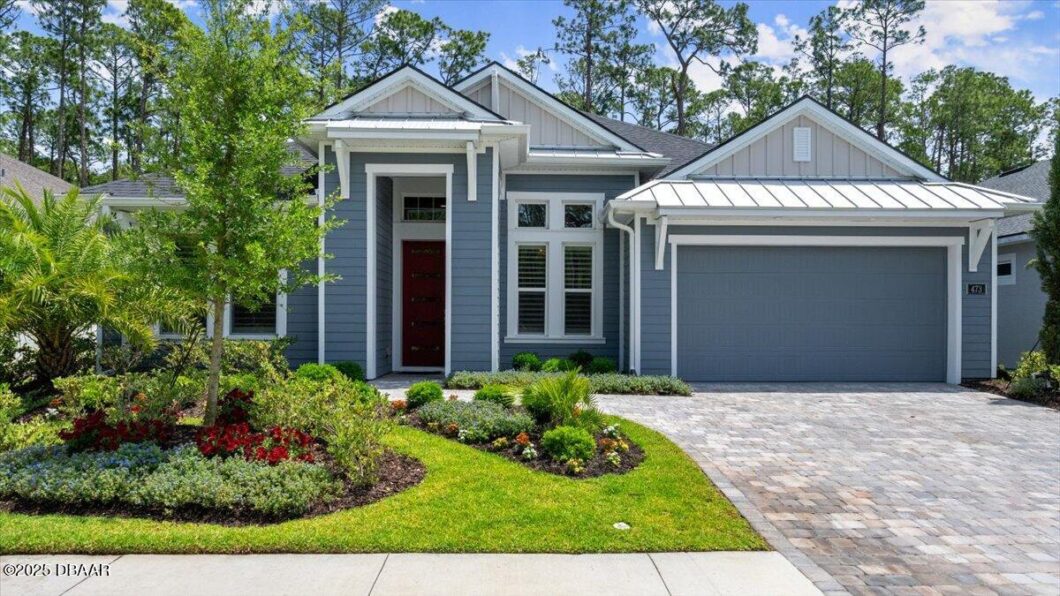 Welcome to 473 Stirling Bridge Dr, a stunning home that combines elegance and functionality in every detail. As you enter through the custom door with glass inserts, you’re greeted by wood floors and soaring high ceilings that create a sense of grandeur. The family room is a perfect blend of comfort and style, featuring wood floors, a tray ceiling with crown molding, and sliders that lead out to a beautiful lanai. The formal dining room is an entertainer’s dream, boasting wood floors, a casual crystal chandelier, and custom window treatments. The oversized kitchen is a chef’s delight, equipped with a gas range, GE Profile stainless steel appliances, two-tone cabinetry, and 42-inch all-wood cabinets with soft-close features. The kitchen is further enhanced by a travertine stone backsplash and a quartz countertop island with a drop edge. Hidden pantry feature perfect for all your cooking needs. Retreat to the master bedroom, where upgraded carpeting and a tray ceiling (CONTINUED) complement the large windows showcasing a serene preserve view. The master bathroom offers a luxurious experience with a long quartz vanity, dual sinks, a walk-in shower with herringbone stone tile, and a walk-in closet with custom built-ins. Bedrooms 2 and 3 feature wood flooring, plantation shutters, and custom wood shelving, providing ample storage and natural light. Bathroom 2 is elegantly appointed with quartz countertops and custom tile work. The office/flex room, anchored at front of home, with its wood flooring and plantation shutters, offers a versatile space for work or relaxation. Bedroom 4 is it’s own retreat with wood floors and right off Bathroom 3-finished with tile, walk-in shower and quartz countertop. Walk through your vanishing sliders to the travertine extended lanai pre-plumbed for an outdoor kitchen. The crystal blue, saltwater pool with a fountain accent and deep preserve view provides a tranquil escape, with plenty of room for pets to roam. The home also includes a three-car garage with epoxy floors, a hybrid hot water heater, and a convenient stop-and-drop area. Outdoors, enjoy lush landscaping with vibrant florals, a paver driveway and walkway. All located in gated, golf cart friendly community of Plantation Bay. Optional memberships available varying from 45 holes of golf, 10 pickle ball courts, 10 tennis courts, brand new 30-million-dollar Founders Club, fitness/spa center, full fitness class calendar, resort style pool along with lap pool and cabana bar & Grill, additional Prestwick clubhouse, bocce ball, full events calendar, and so much more. Buyers of this home to receive a substantial discount on initiation fee at the club. Ask listing agent for details. This exquisite home is equipped with modern conveniences and abundance of upgrades including a Google Nest thermostat, comfort height Kohler toilets throughout, wood floors throughout, soaring ceilings with crown molding, hardy board plank siding and metal roof accents for coastal elevation, Minka fans and custom light fixtures throughout, custom mirrors in bathrooms, custom herringbone tile through master bath shower, great natural light, widened driveway for convenience, preserve views across the street for natural surroundings, wood shelving throughout, plus much more! Experience the perfect blend of luxury and practicality in this coastal masterpiece. With its thoughtful design, modern amenities, and breathtaking surroundings, 473 Stirling Bridge Dr is more than just a homeit’s a lifestyle. Seize the chance to own this exceptional property and create lasting memories in a setting that truly stands apart. Your dream home awaits!