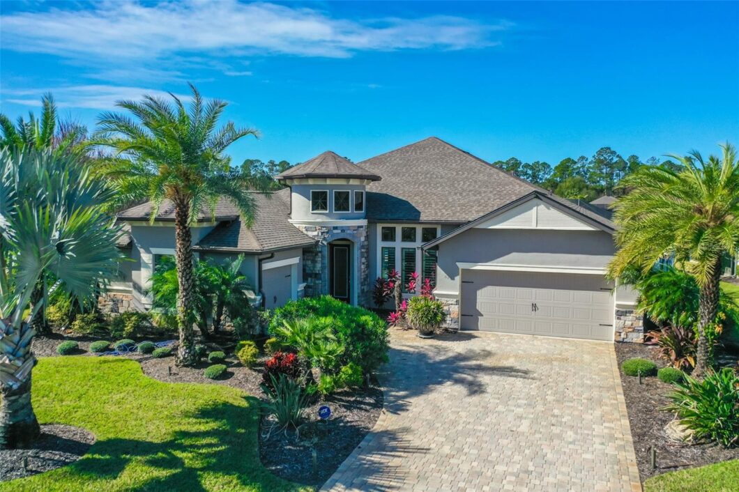 Under contract-accepting backup offers. One or more photo(s) has been virtually staged. Exceptional Executive POOL Home with all the UPGRADES! This 3 bedrooms plus office, 3 car garage, pool/jacuzzi, Cameron floor plan is ready for new owner! Walk through your glass front door and follow through with floating cabinets, WOOD floors, and high ceilings. Deluxe Kitchen with 42in WHITE/glazed WOOD cabinets, stainless steel appliances, pull outs, pantry, TILE backsplash, and GRANITE countertops. Paired with Dining Room with lots of windows of lake/fountain views, door to lanai, WOOD floors, plantation shutters. All opens onto Family Room with GAS fireplace with stone wall, stackable/vanishing sliders to lanai, WOOD floors, surround sound. Paired with sun-room with other side of fireplace, lots of natural light, wood floors, and plantation shutters. Premium Master Bedroom overlooks the lake and fountain. Continue with Wood floors, plantation shutters, large walk-in closet, and en-suite bath. Master Bathroom finished with separate sinks with vanity area, large WALK-IN TILE shower and soaker tub. Split floor plan with 2 additional great sized bedrooms. Both bedrooms finished with wood flooring and plantation shutters. 2nd bath finished with TILE tub/shower combo and upgraded vanity. At front of home, you will find a flex space. Completed with GLASS French doors, wood floors, and plantation shutters. Easy space for office, den, or, if desired, additional dining space. Head out back to an absolute stunning retreat! Fresh water pool with SOLAR heat, GAS heater for jacuzzi, bubblers with fully automated system to be controlled from app on phone, all overlooking stunning lake and fountain-which is lighted at night! Lanai is finished with sunshades, pavers, and lush landscaping. Home is completed with a total of a 3-car garage, 2 together with great built-ins. 2nd garage set up, perfect spot for golf cart with lots of cabinets. So many upgrades in this home including GENERATOR, camera system interior/exterior, surround sound interior/exterior, whole house water filtration system with reverse osmosis, Control4 audio system with control rack, plantation shutters throughout, wood floors throughout, pre-plumb for outdoor kitchen in lanai, floor outlets, security system, lush landscaping, freshly painted exterior, irrigation sprinklers on well, plus so much more! All located in GATED, golf cart friendly community of Plantation Bay. Plantation Bay Golf and Country Club offers optional tiered memberships to include 45 holes of golf, 9 tennis courts, 10 pickleball courts, brand new $30 million clubhouse, additional clubhouse, cabana area overlooking 2 pools, fitness/spa center, lifestyle coordinator, plus so much more! Buyers of this home to receive a substantial discount on initiation fee at the club. Ask listing agent for details. Premium home, on premium property, in premium community!